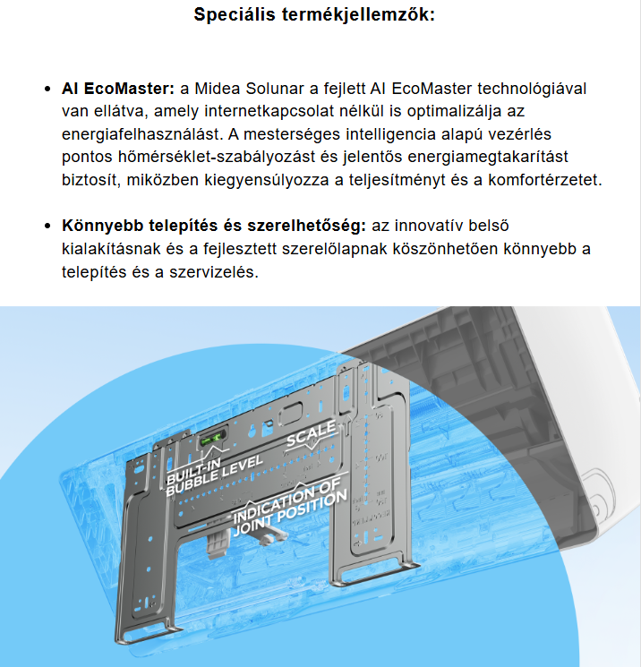 A Midea LUN-09-SP Solunar Inverteres Split klíma fontos tulajdonságai: